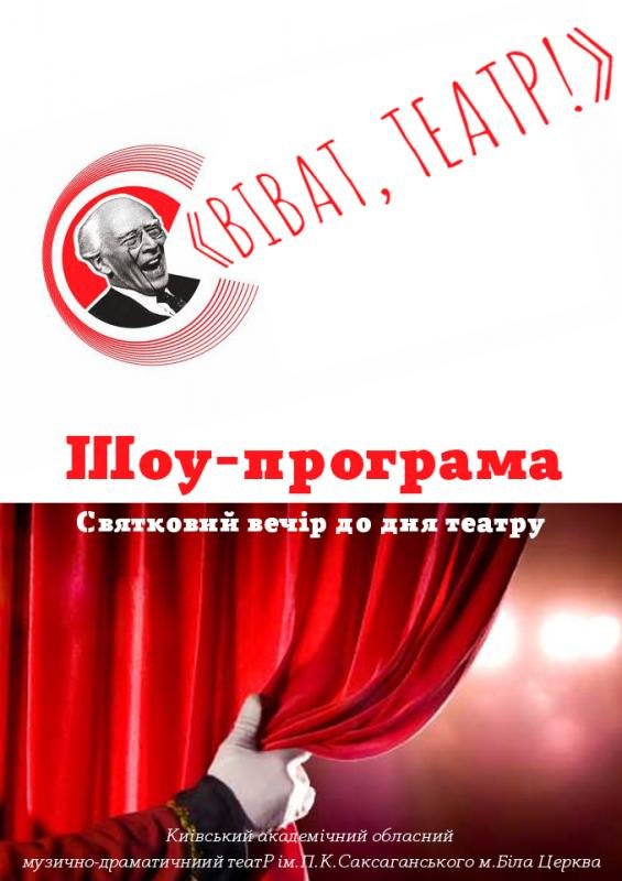 Шоу-програма «Віват, театр» присвячена дню театра. Відвідувачів очікує: непередбачуванна та весела шоу-програма у виконанні артистів нашого театру.