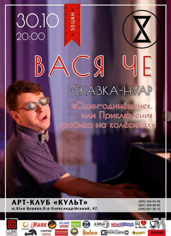Наш давній друг - дуже талановитий, але так само дуже скромний - поет, музикант, актор і самостійний виконавець своїх творів - Вася Че - привезе і покаже нам свою казку-нуар. Це музично-поетична фантазія, назва якої безумовно пасує під святковий хеллоуінський настрій - "Один-одинёшенек или Приключения гробика на колесиках".