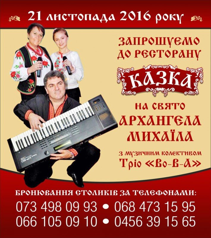 Казкова атмосфера не меньш казкового Свята Архангела Михаїля. Пропонуємо чарівну атмосферу, живу музику у виконанні тріо Во-В-А. А також дуже казкові страви. Приєднуйтесь.