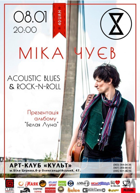 Самим першим гостем нашої сцени у 2017-му році буде наш давній друг Міка Чуєв - лідер київського гурту «Бикфордов», людина-оркестр та блюз-роковий енерджайзер!