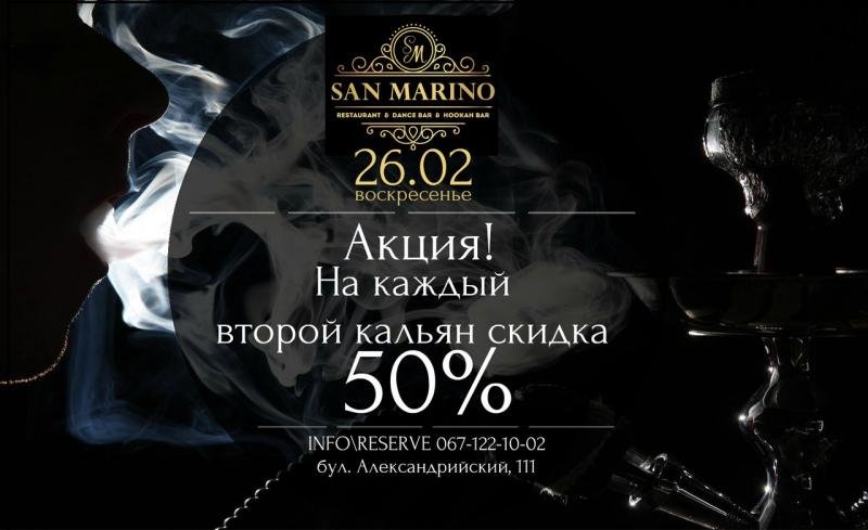 Кожен другий кальян за 50% від ціни. Музична атмосфера від DJ WELCHER.