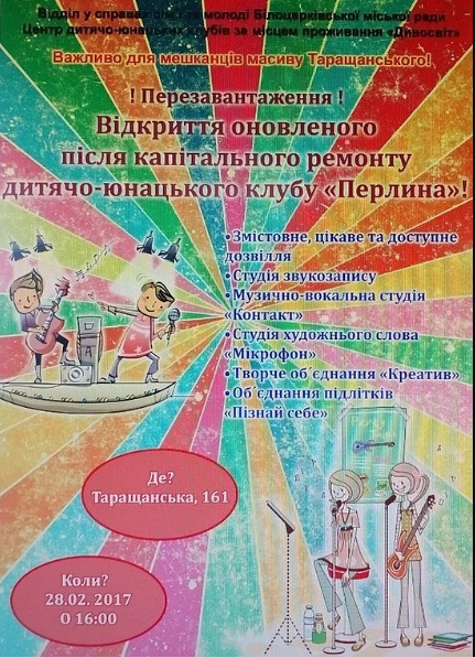 Відділ у справах сім`ї та молоді Білоцерківської міської ради. Центр дитячо-юнацьких клубів за місцем проживання "Дивосвіт".