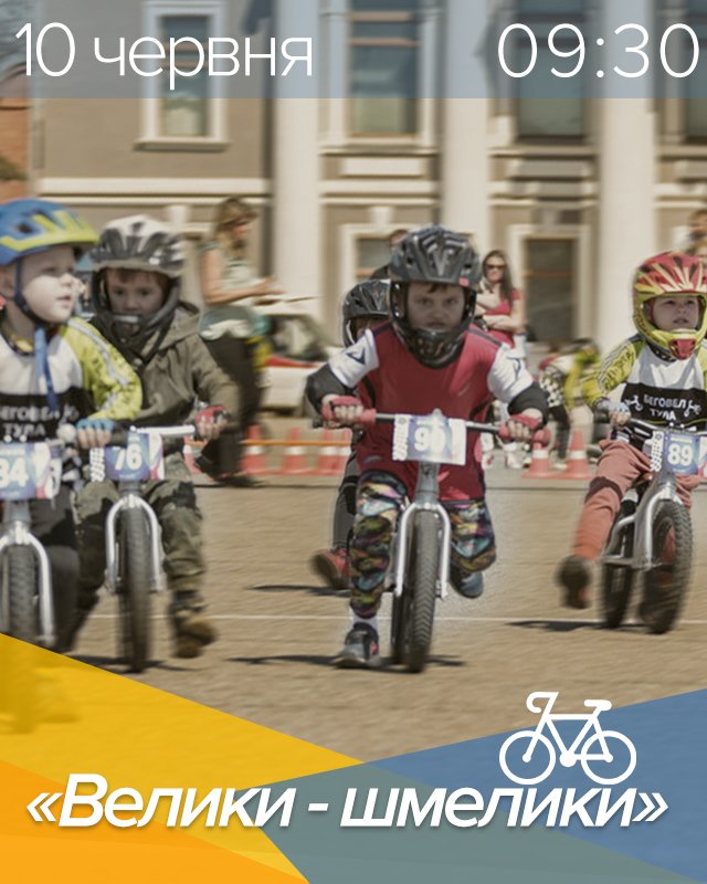 Збір о 9.30 на пл Шевченко (біля Радону - там, де голуби). Діти отримають повітряні кульки та розважатимуться з аніматором. Велопарад проходитиме о 10.00-10.20 від магазину "Каштан" до РАЦСу.