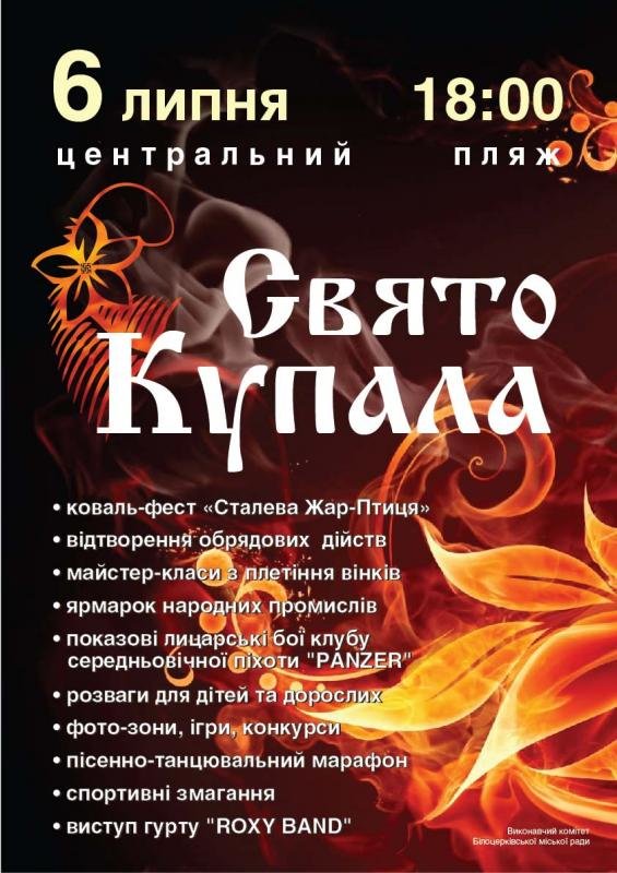 Гостей та жителів міста запрошуємо на свято Купала в Білій Церкві.