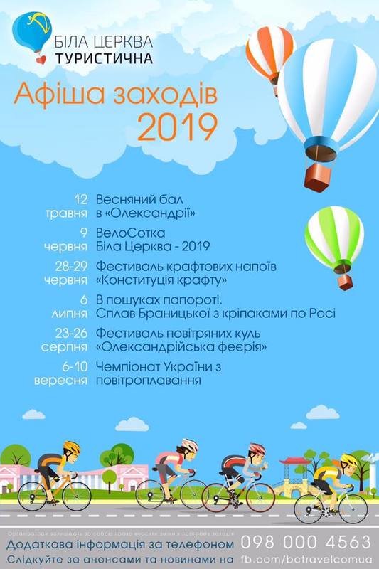 Розклад заходів на 2019 рік від ГО «Біла Церква туристична». Шостого липня в парку «Олександрії» відбудеться сплав Браницької з кріпаками по річці Росі.