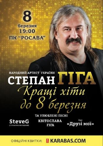 Степан Гіга завітає в наше місто 8-го Березня, щоб привітати жіночу половину зі світом та заспівати свої кращі хіти.