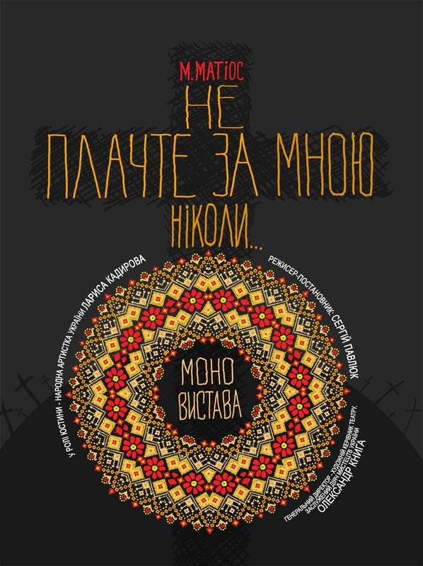 Жанр інсценізації твору сучасної вітчизняної письменниці «Не плачте за мною ніколи…» режисер-постановник Тетяна Шумейко визначила для себе як одкровення, головну тему – як перегляд свого життя і перевірку готовності до переходу в інший вимір. Ідея вистави закликає разом із роздумами простої сільської жінки – баби Юстини у виконанні артистки Олени Бондаренко – замислитися над тим, що ніхто не вічний на цьому світі. Напевне, проблема моральних начал, покладена в основу сценічного дійства, яка ніколи не втрачає актуальності, не залишить байдужими наших глядачів. Хочеться вірити, що створені на сцені натхненною грою акторів образи відгукнуться в душі кожного як «спів душі», як заповіт якомога повніше відчувати і проживати кожну мить свого життя у мирі і гармонії з оточуючим світом.