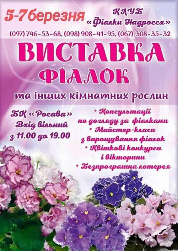 Запрошуємо жителів та гостей міста відвідати виставку фіалок та інших кімнатних рослин.
