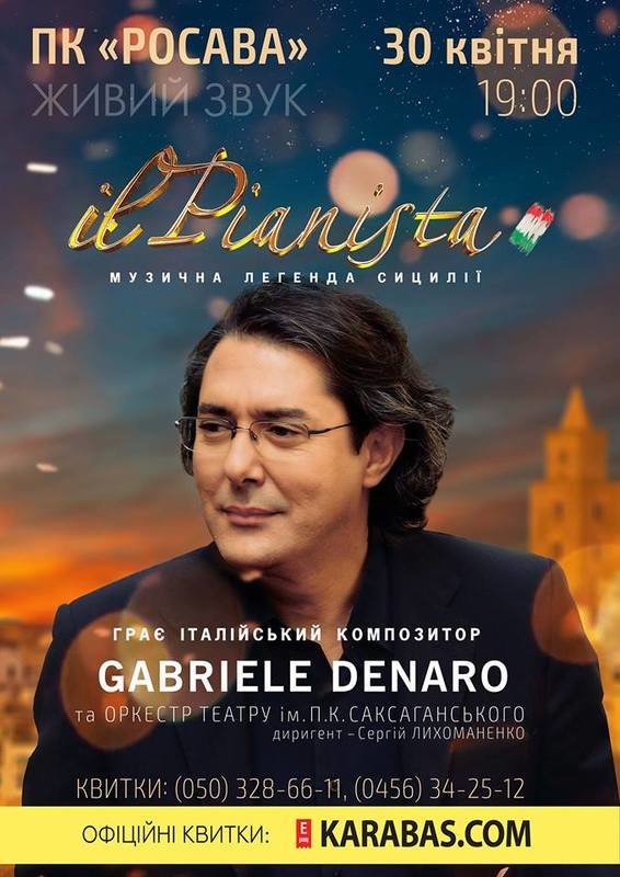 Неймовірний концерт італійського композитор та піаніст Габрієль Денаро разом з оркестром театру Саксаганського подарують жителям міста незабутні та приємні враження.