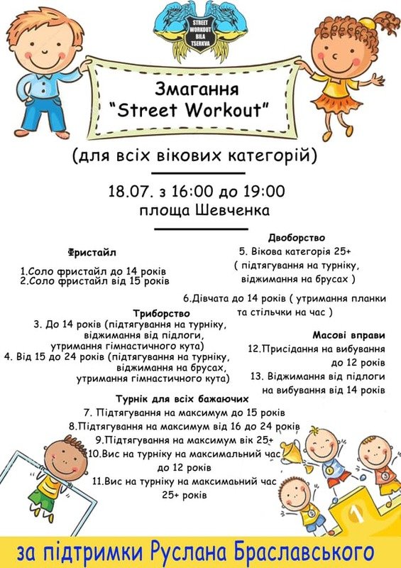 На площі Шевченка розпочинаємо спортивні змагання для всіх вікових категорій. Кубки, медалі, дипломи та призовий фонд вже чекають на переможців. Приходь, змагайся, перемагай!
