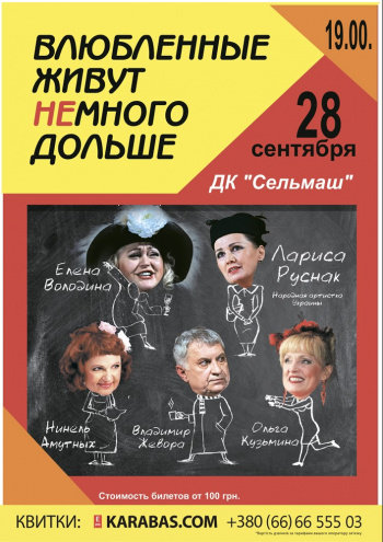 "Закохані живуть трохи довше" - незабутнє театральне видовище з яскравими персонажами у виконанні чудових акторів, чудовими декораціями, костюмами і музикою.