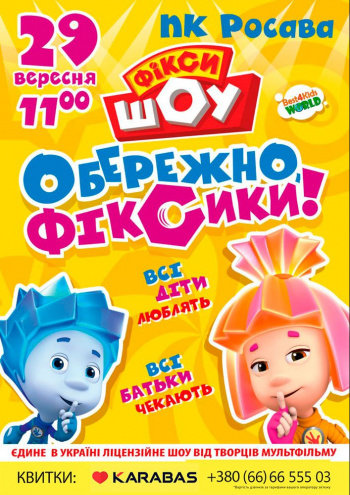 «Фікси ШОУ!» — інтерактивна вистава, яка дозволить кожній дитині взяти участь у дивовижних пригодах фіксиків. Ви миттєво схопитеся за планшет або телефон, адже це — єдине в Україні ліцензійне шоу від творців мультфільму.