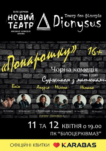 "Понарошку" - це гра в дорослих, яку затіяли діти. Театр Dionysus занурюється в світ п'єси, тема і сюжет якої розкривають жахливу сутність людських відносин. Чорна комедія - саркастична насмішка над сучасними реаліями, буднями, звичайними сімейними історіями. Зайвий раз підкреслюючи, перебільшуючи, на перший погляд не винні дитячі ігри, пустощі, актори театру Dionysus "Понарошку" грають в життя, розкриваючи наболіле, піднімаючи непріємні теми, кажуть про незручне, відверто пропонують глядачам поглянути на навколишній світ з боку, очима дітей.