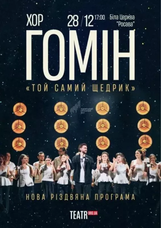 Найкращий хор України 2024, колектив, який розірвав соцмережі та підкорив мільйони слухачів в Україні та за кордоном новим прочитанням української пісні, хор "Гомін" Львівського органного залу із новою різдвяною програмою у вашому місті!