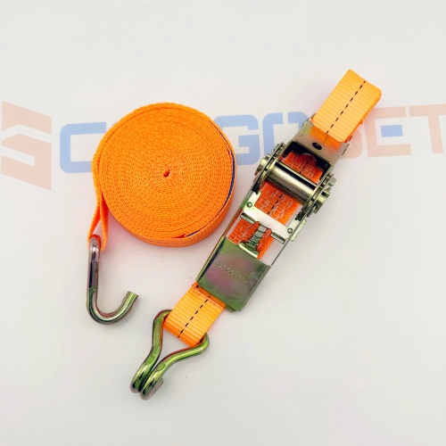 Ремені стяжні з гаками — надійне рішення для фіксації вантажів у вантажівках, на причепах та платформах, коли важливо швидко зафіксувати, підтягнути і утримати вантаж без зміщень під час руху. Їхня конструкція проста і водночас ефективна: високоміцна поліестерова стрічка, храповий натяжний механізм та кінцеві фітинги-гаки утворюють систему, що забезпечує стабільний притиск і контрольоване натягнення без використання інструментів. Вироби нашого асортименту відповідають вимогам профільного стандарту EN 12195-2, що гарантує правильну маркіровку характеристик, контроль розривних навантажень і відповідність вимогам безпеки при перевезеннях.
