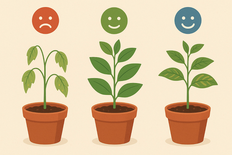 Якщо ґрунт має дуже низький pH (кисле середовище), рослини починають страждати від нестачі кальцію, магнію та фосфору. При цьому можуть проявлятися ознаки «кислотного стресу»: уповільнення росту, пожовтіння листя та крихкість стебел. З іншого боку, занадто високий pH (лужний ґрунт) блокує засвоєння заліза, цинку та марганцю. Листя рослин стає блідим, а коренева система працює неефективно. В обох випадках рослина виглядає ослабленою, навіть якщо добрив достатньо.