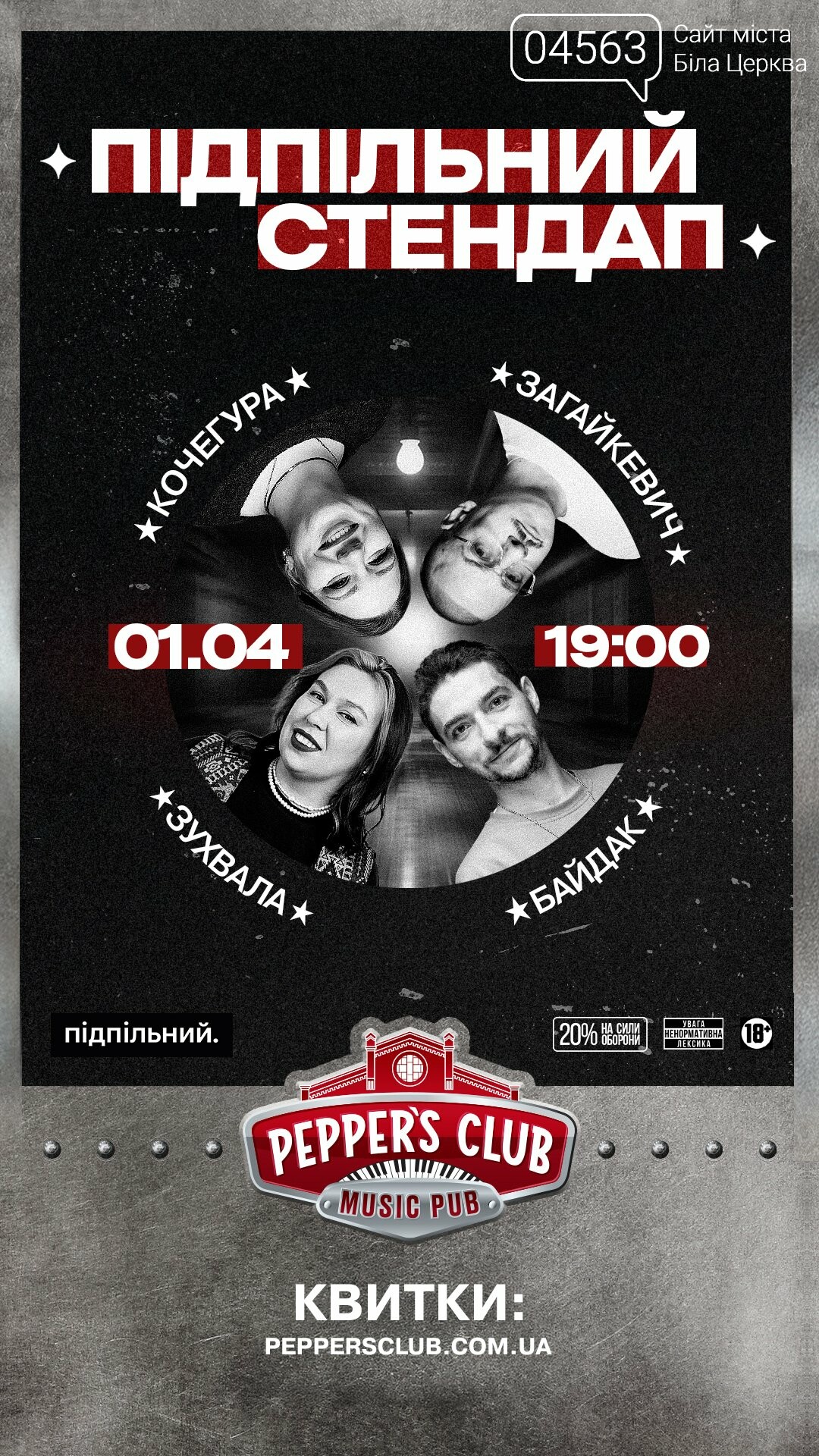 Квітень у Pepper’s відкриє вечір української комедії від «Підпільного Стендапу». У програмі — сміливий стендап із чотирма коміками, кожен із власною подачею та темпом.