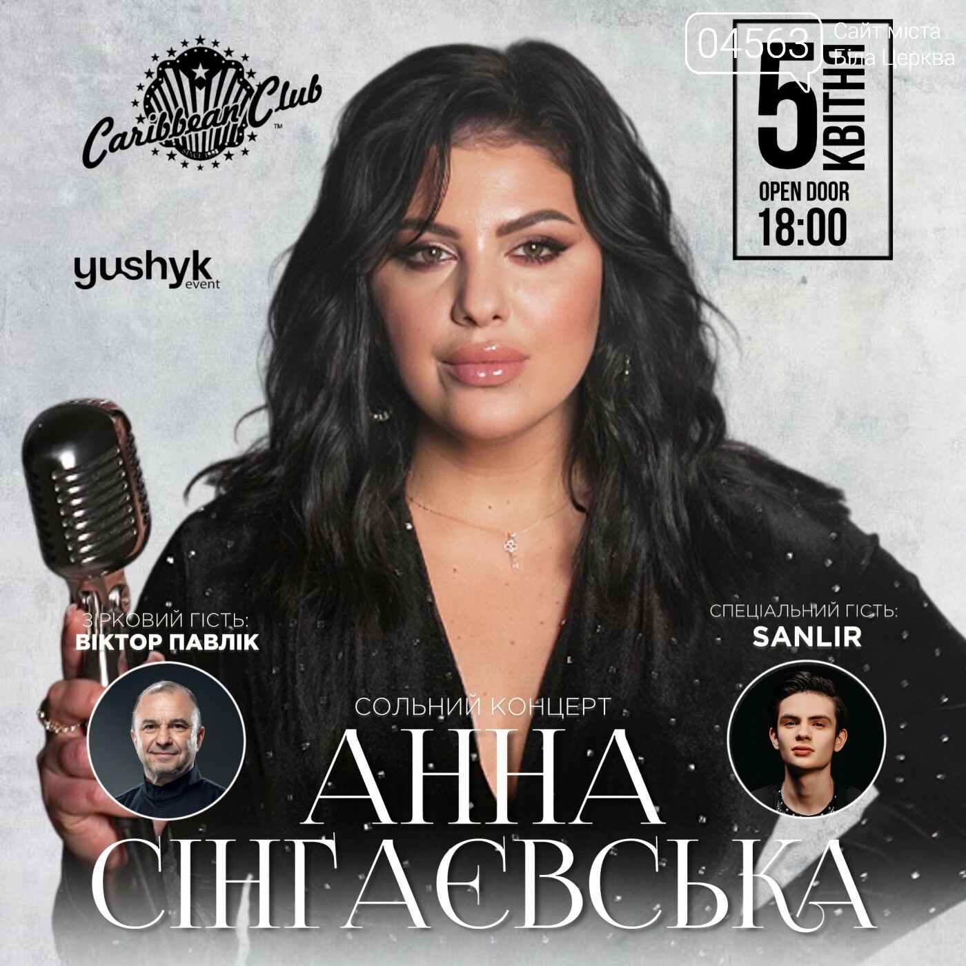 Анна Сінгаєвська виступить в Caribbean Club із сольним концертом у супроводі живих інструментів. У програмі — авторські пісні та композиції з її репертуару, зокрема «Білі айстри», «До тебе», «Амінь», «Ворожила» та інші. Формат вечора — камерний лайв із фокусом на вокалі та живому звучанні.