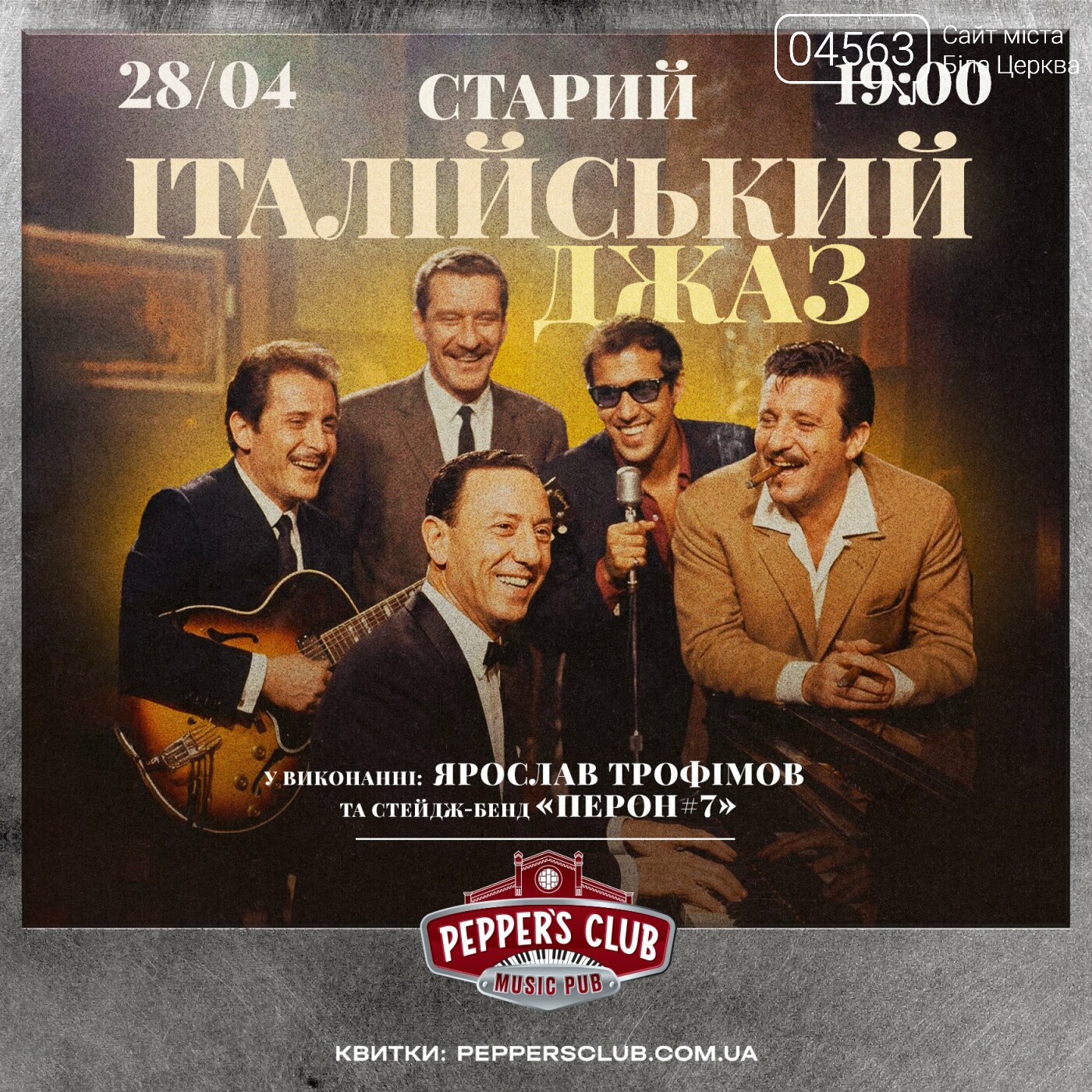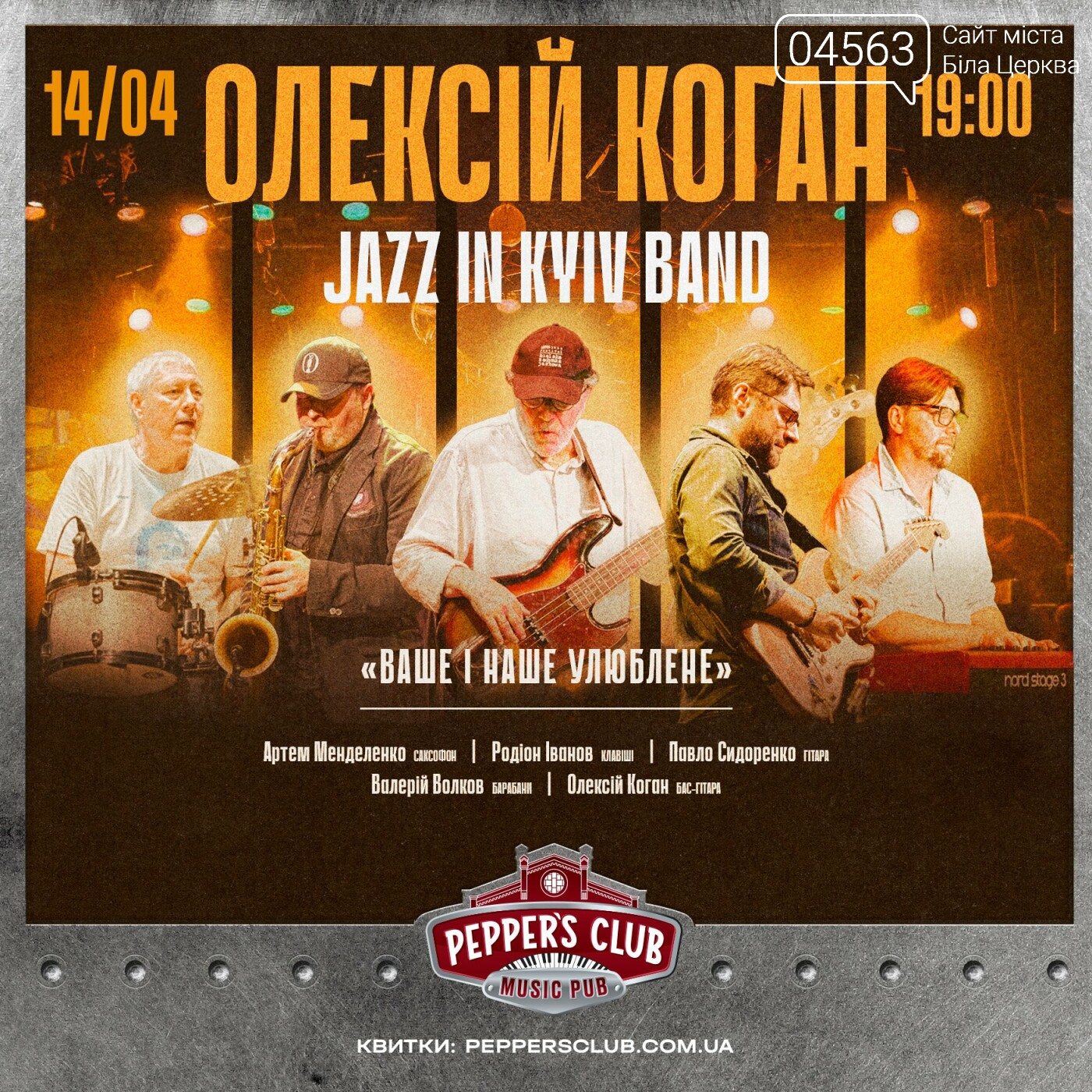 14 квітня в Pepper’s Club — джазовий концерт за участі Олексія Когана та Jazz in Kyiv Band з програмою «Ваше і Наше улюблене». У програмі — авторська добірка Jazz in Kyiv Band з ретельно підібраних джазових і блюзових композицій у камерному форматі.