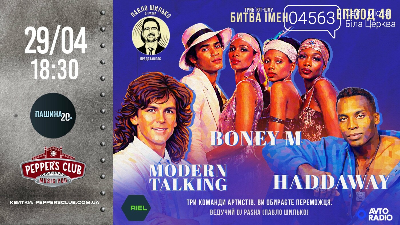 Павло Шилько (DJ Паша) продовжує свій формат музичного хіт-параду, побудованого як «битва імен». Цього разу програма об’єднає музику Modern Talking, Boney M і Haddaway — трьох артистів і гуртів із різних епох попсцени. Їхні хіти прозвучать наживо у виконанні українських артистів у форматі концертного батлу.